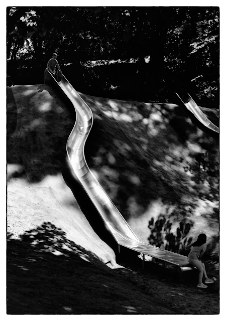 Die oberen Tonwerte sind optimal wieder gegeben. In den Schatten könnte etwas mehr Zeichnung sein, aber es gibt den Seheindruck bei diesem Wetter recht gut wieder, denn selbst das Auge konnte beispielsweise bei der Rutschbahn nicht alles erfassen von der gleißenden Rutsche bis zum Baumschatten.