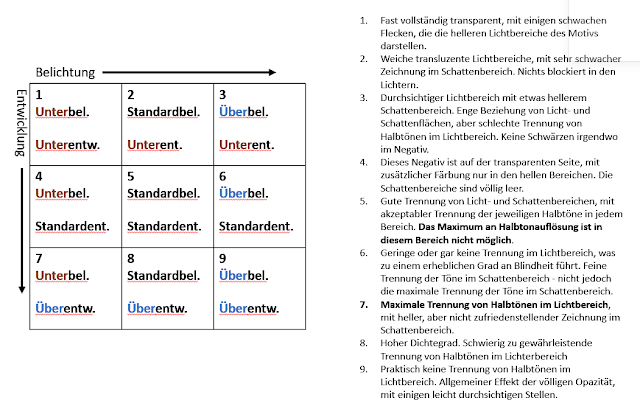 (Um zu vermeiden, dass die Schatten bei der starken Unterbelichtung ohne Zeichnung sind, wurde der Film vorher mit einer Zone I Belichtung vorbelichtet.)